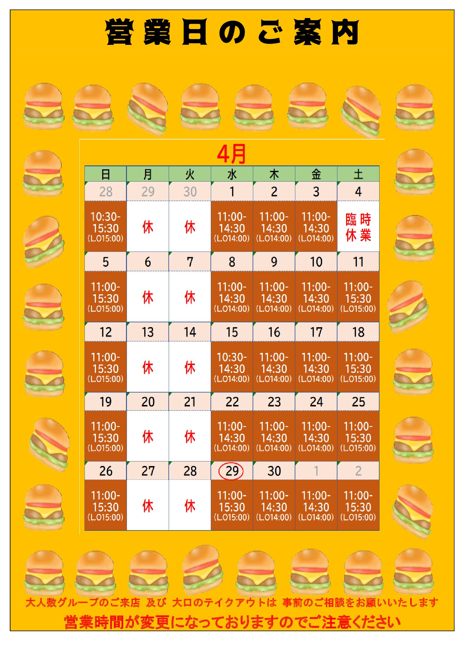 お客様にはご迷惑をおかけいたしますが、スタッフ不足日につきましては
